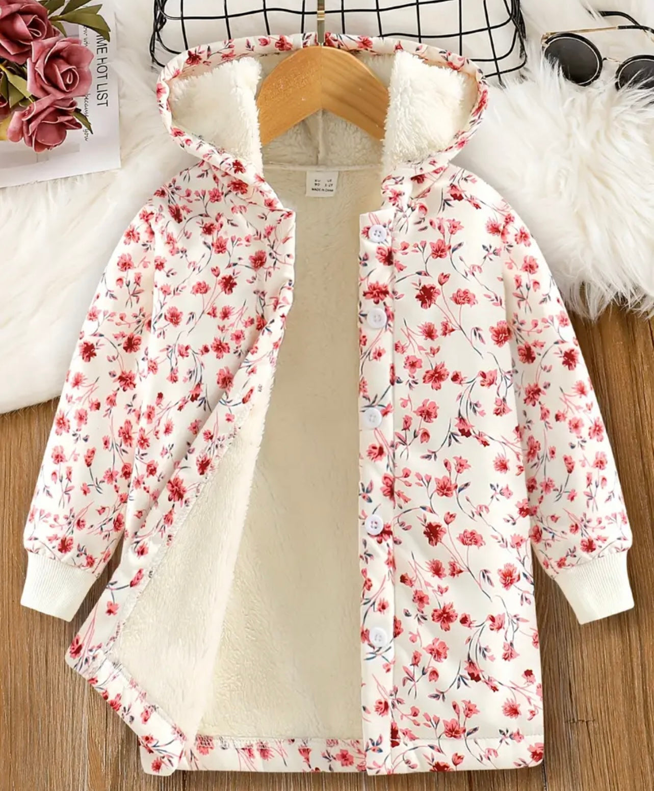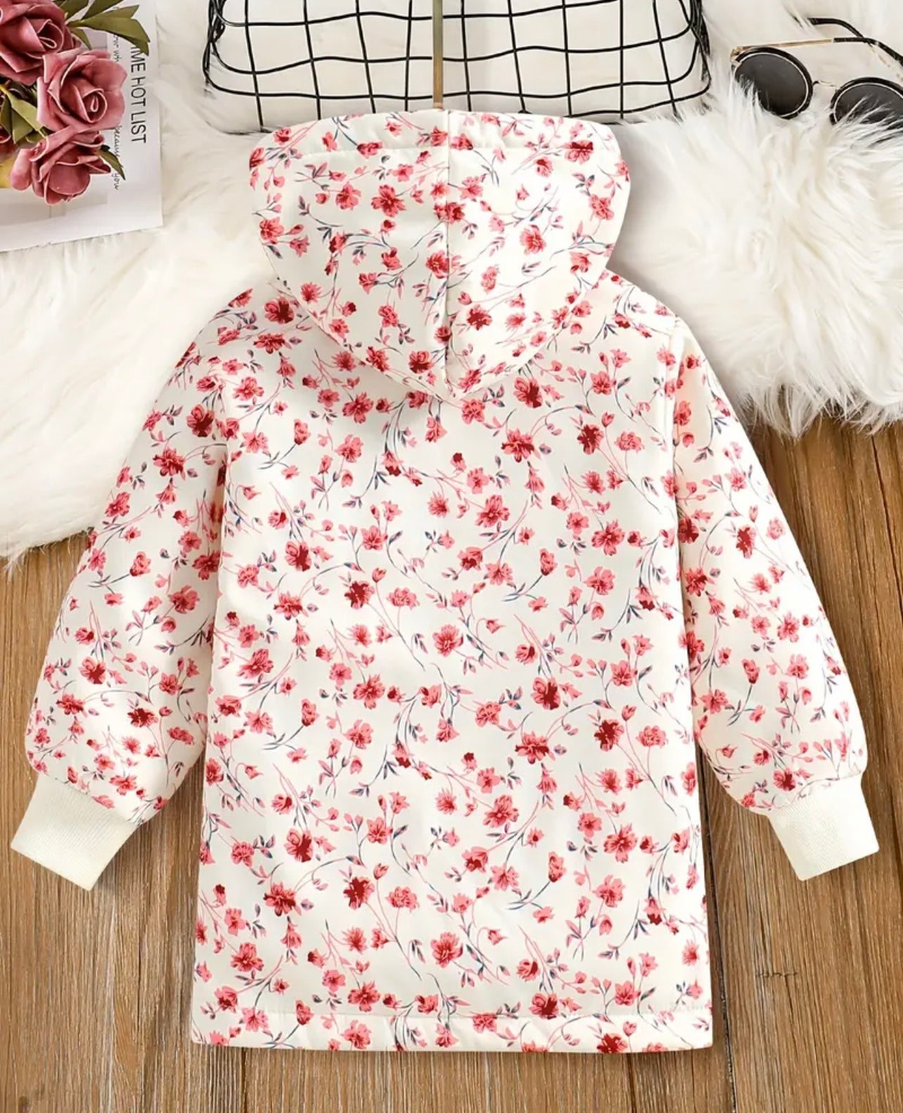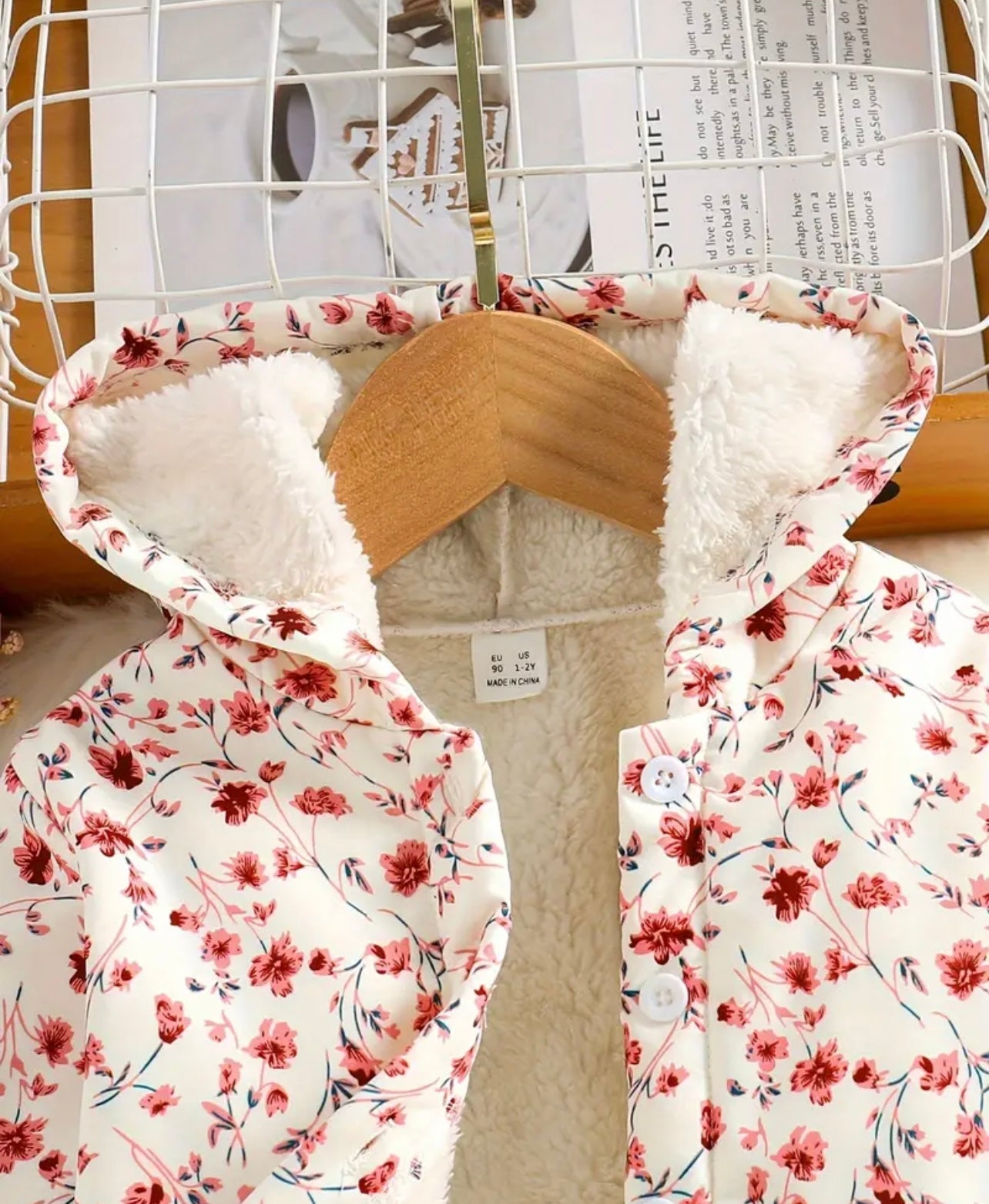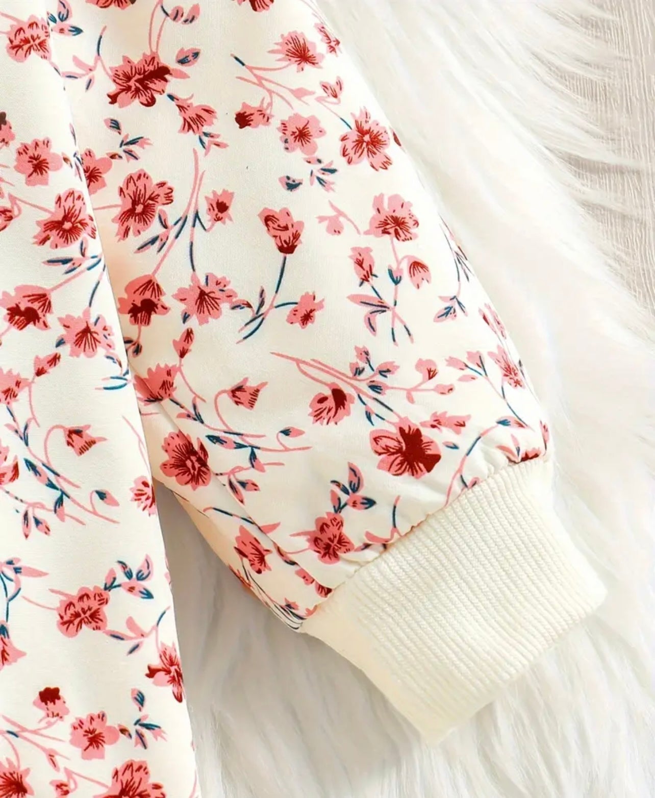 Esta hermosa chamarra blanca con flores rosas es perfecta para tu pequeña!