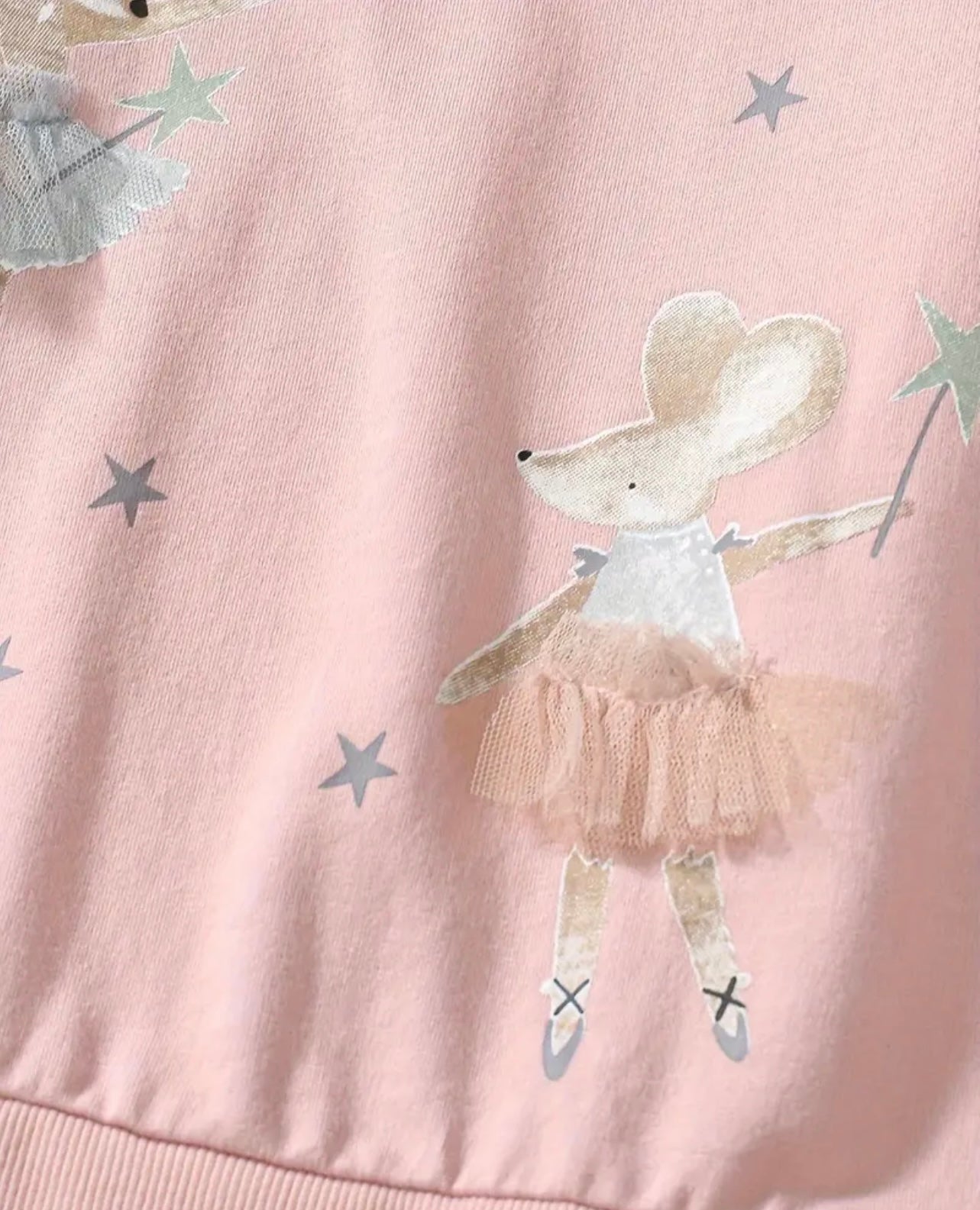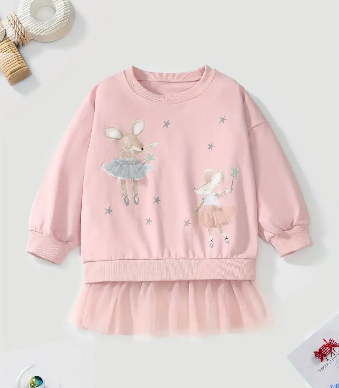 Rosita con tul en la parte baja, ratoncitos y estrellitas!