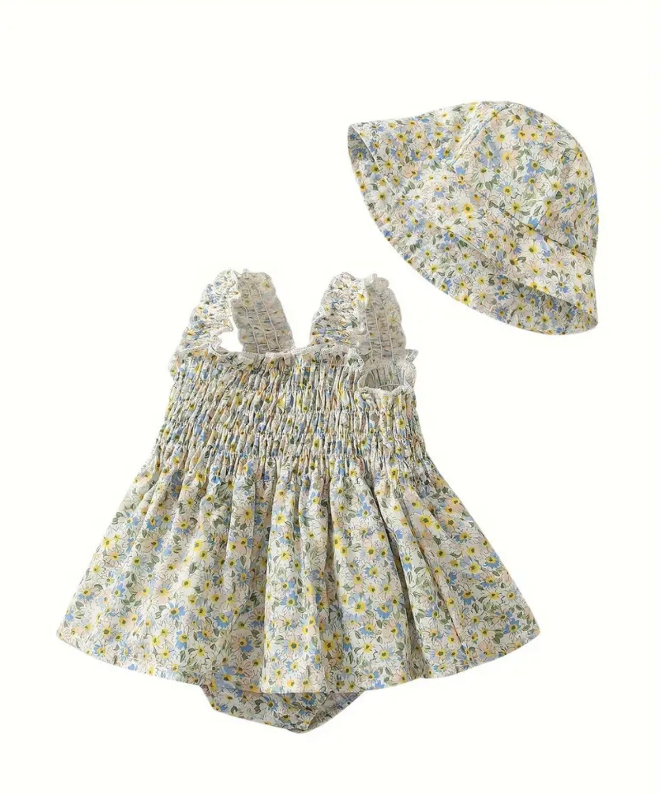 Vestido Flores Bebe con Gorrito